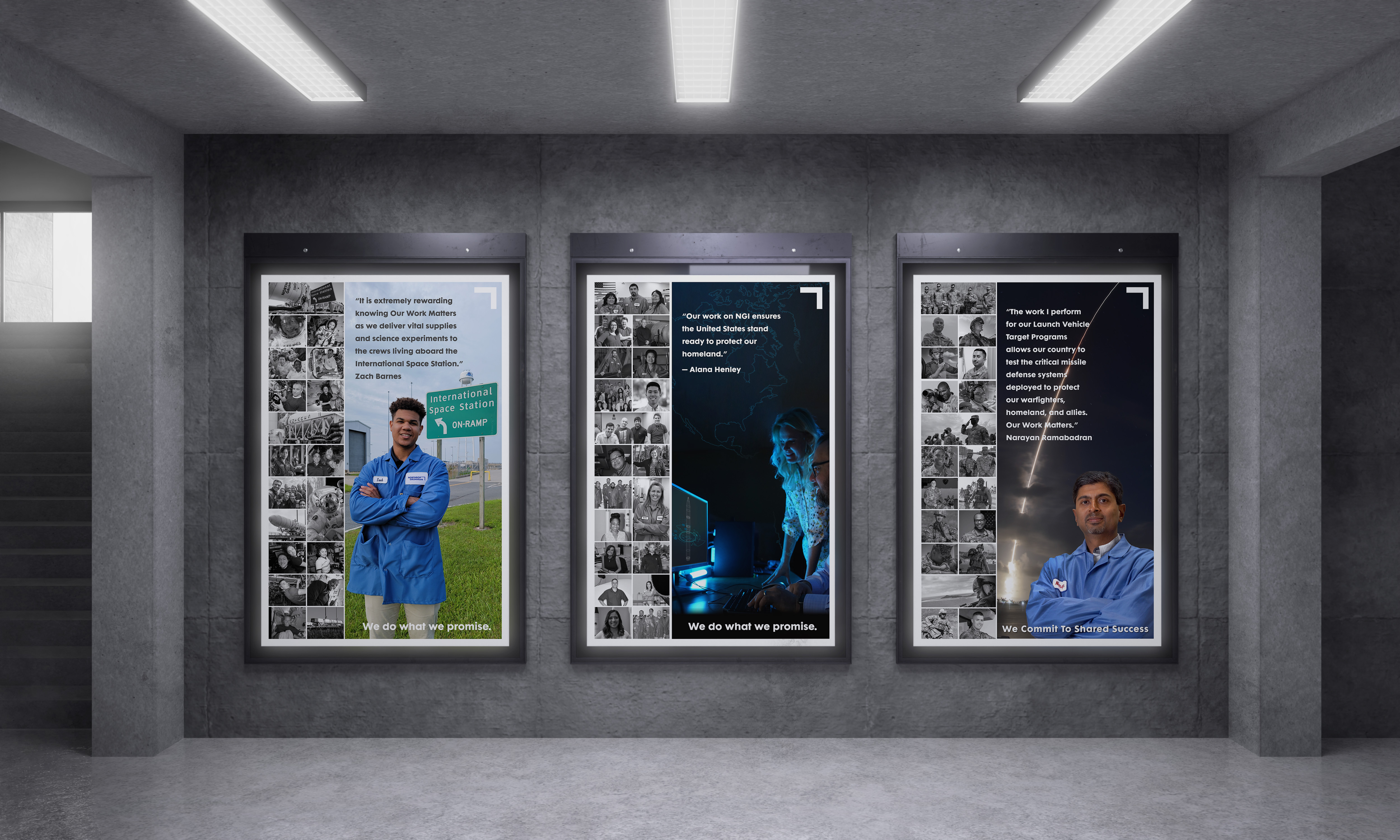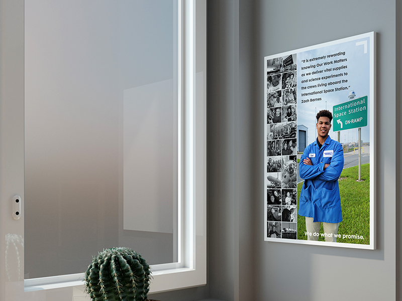 Posters created as part of an employee engagement campaign using Adobe Photoshop and Illustrator. I sourced and created composite images to create these 24’x36” posters for print. Using color and contrast, I engage the audience and direct their attention to the messaging.